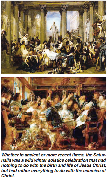 “How much the date of the festival depended upon the pagan Brumalia (December 25) following the Saturnalia (December 17-24), and celebrating the shortest day of the year and the ‘new sun’ … cannot be accurately determined. The pagan Saturnalia and Brumalia were to deeply entrenched in popular custom to be set aside by Christian influence …. The pagan festival with its riot and merrymaking was so popular that Christians were glad of an excuse to continue its celebration with little change in spirit and in manner. Christian preachers of the West and the Near East protested against the unseemly frivolity with which Christ’s birthday was celebrated, while Christians of Mesopotamia accused their Western brethren of idolatry and sun worship for adopting as Christian this pagan festival.”59