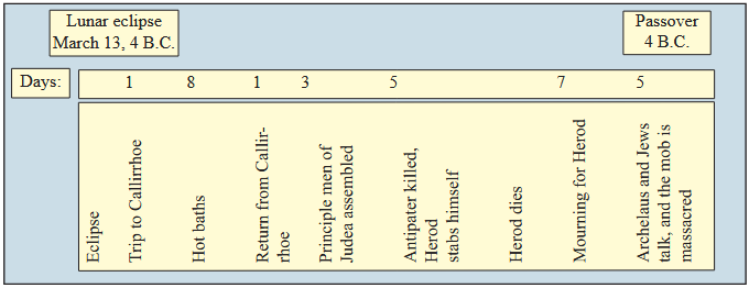 These facts show conclusively that the events ascribed to Herod in The Antiquities of the Jews occurred in one month, not 13 months. These events also had to occur in 4 B.C., just before the Passover of that year.