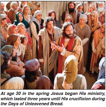 3. Jesus was about age 30 when His ministry began. This fact is recorded in Luke 3:23 … and Luke, being a historian, is very precise in his counting and dating. This age of 30 was given right after his baptism, which has already been shown to have occurred not long before Passover (about 50 days before) in the spring of 27 A.D. This fact correlates well with the fact, as already proven earlier, that Jesus was born not long before the Passover in 4 B.C.