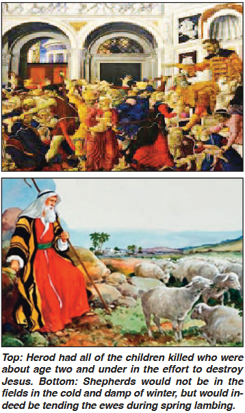 This discussion will show conclusively that Jesus Christ could not have been born on December 24 or 25, in the dead of winter. Not only that, but He was born in the spring of the year, near the Passover season. Shepherds would not be out in their fields watching over their sheep during the winter solstice, but in Luke 2:8 at the birth of Christ the shepherds are indeed in the fields.