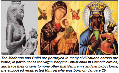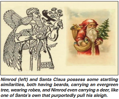 Let us also understand that the very word “Christmas” is a compound of “Christ” (anointed) and “mas,” (mess, or feast). Thus, the festival is a feast commemorating the anointed one, who in this case is Nimrod himself, or his incarnated replacement born on December 25.
