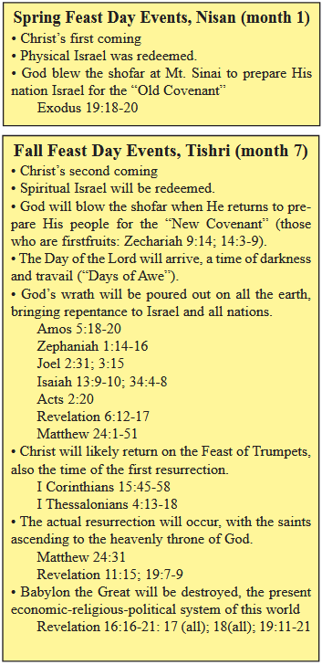 More than anything else the Feast of Trumpets points out the coming of Jesus Christ to this earth to reign as King of Kings and Lord of Lords, stamping out the evil which Satan the devil has ordered upon it (Zechariah 14:1-9; Revelation 19:11-21). Nearly all governments on earth are presently ordered with an oppressive top-down pyramidal structure, so unlike the brotherly association we have with Christ, and the Father-son relationship we have with our heavenly Father (Matthew 12:49; Romans 8:29; Colossians 1:18; Hebrews 1:6; Revelation 1:5).